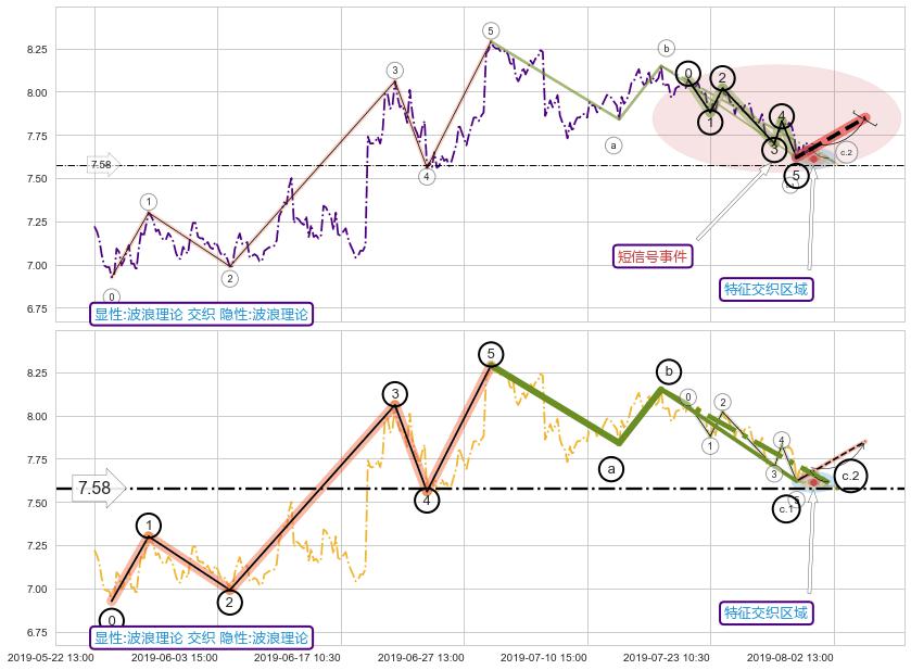 从2019-06-19 10:30至2019-07-02 11:30,共包含50个小时,阶段股价上涨7.72%,阶段股价变动位移路程比: 1 : 5