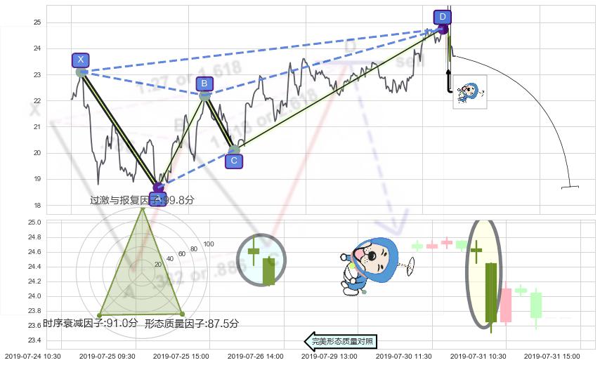 ➢ 🕰 价格走势在2019-07-30 15:00:00至2019-07-31 09:30:00期间形成下跌螺旋桨,残存影响值:-7.43