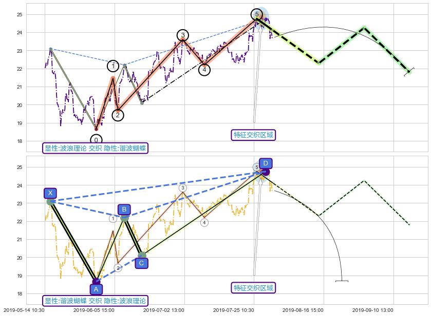 ➢ 波浪理论与谐波蝴蝶信号事件周期长度级别相同,同周期信号事件