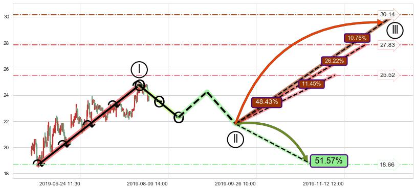 ➢ 高概率大级别循环上涨浪被破坏,反转向下(突破5浪起点)概率51.57%