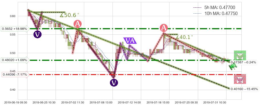 ➣ 预测:2019-08-02 10:00,【继续下探】稳定目前下跌趋势的前提下,预测价格:0.44885
