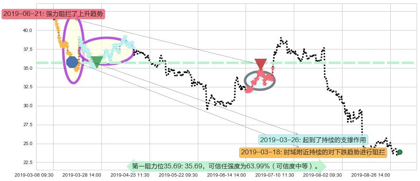 2019-06-21: 第一阻力位35.69强力阻拦了上升趋势,成功阻止了价格的继续上涨。