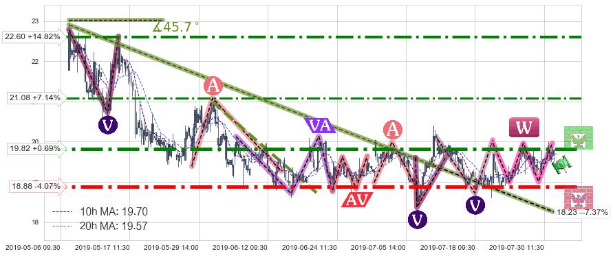 ♘ 阻力价格位19.82,可信任强度92.23%,距离最后交易2019-07-31 15:00形成的收盘价格19.68相差 +0.69%