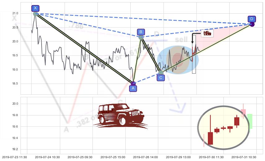 ➣ 谐波伽利:b下跌接近c:猜想支撑性拉升 → 上涨 →【拐点】支撑临近 → 大趋势均值回复