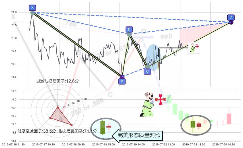➢ 🕰 价格走势在2019-07-22 09:30:00至2019-07-22 09:30:00期间形成单针探底(定海神针),残存影响值:3.36