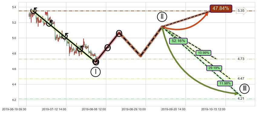 ➣ 循环浪继续向下【平均值】位置(10-17:12, 4.47),匹配聚类样本比例55.97%, 可能性概率29.19%