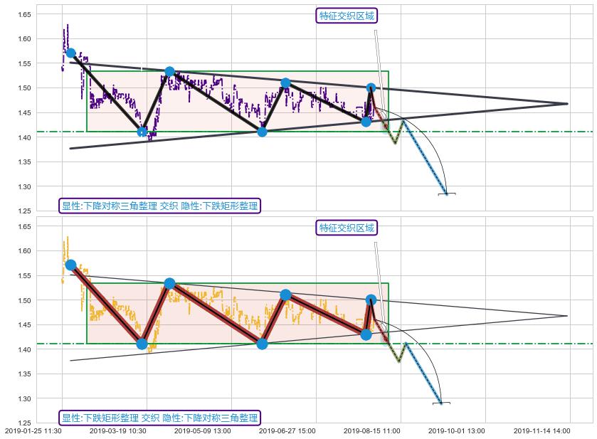 ➢ 下降对称三角整理与下跌矩形整理信号事件周期长度级别相同,同周期信号事件