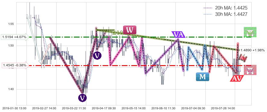 ♘ 阻力价格位1.5194,可信任强度62.59%,距离最后交易2019-07-31 15:00形成的收盘价格1.4600相差 +4.07%