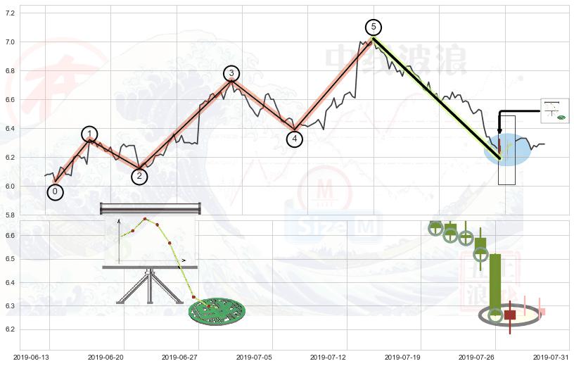 ➣ 波浪理论:猜想击穿破位c点后继续下跌 → 下跌 → 风险信号 → 小趋势跟踪