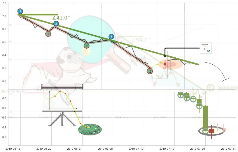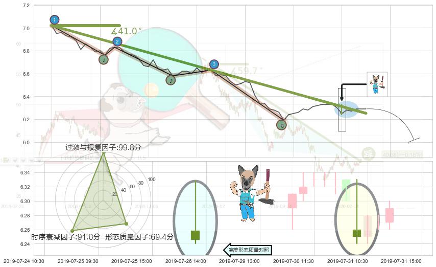 🦴 长线均值回复组合短线趋势跟踪[强阻力信号]2019-07-17 09:30-2019-07-30 09:30下跌趋势依然成立(下跌趋势跟踪依然存在),短线价格略微上行反弹(均值回复猜想),即将接近下跌趋势提供的未破位阻力价格:6.25。