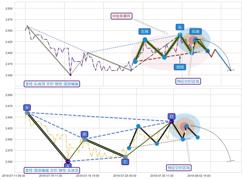 ➢ 头肩顶属【中级别信号事件】谐波蝙蝠属【长级别信号事件】中长周期组合信号事件,中长事件长度比45.57%