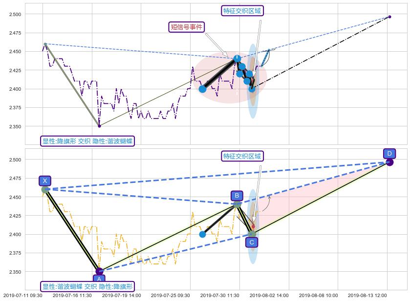 ➢ 降旗形属【短级别信号事件】谐波蝴蝶属【长级别信号事件】长短周期组合信号事件, 短长事件长度比24.72%