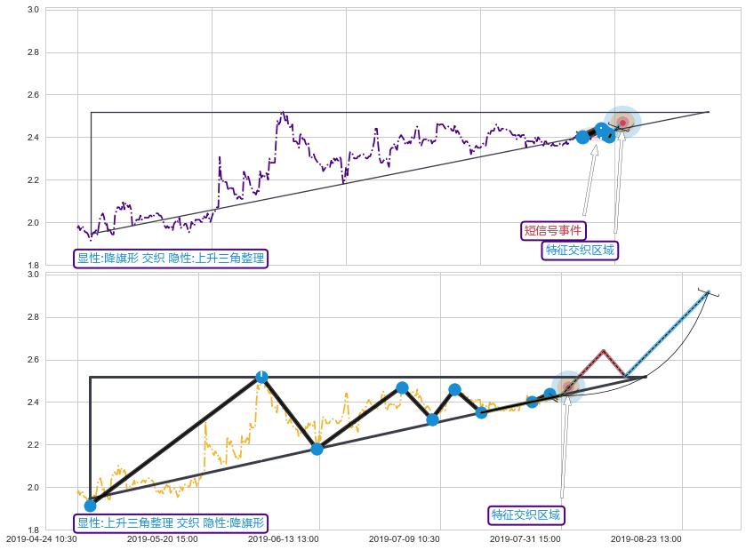 ➢ 降旗形属【短级别信号事件】上升三角整理属【长级别信号事件】长短周期组合信号事件, 短长事件长度比5.63%