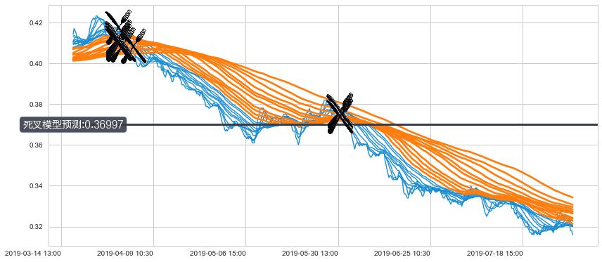 ➣ 70小时均线于(05-30 14:00: 0.37383)形成【死叉】基于【死叉历史模型】预测死叉后最低波谷价格: 0.35643, 死叉后最低价格0.31000,已经下跌超出预测最低波谷价格, 预期反弹
