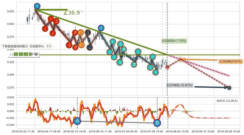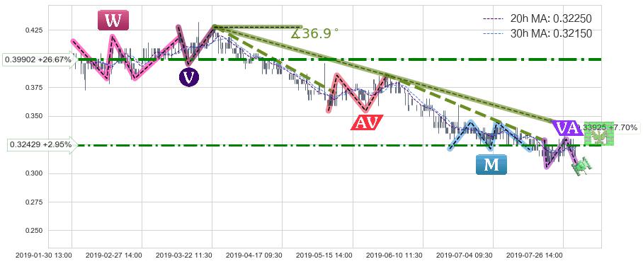 ➢ 预测:2019-08-13 12:00,【小幅反弹】稳定目前下跌趋势的前提下,预测价格:0.33048