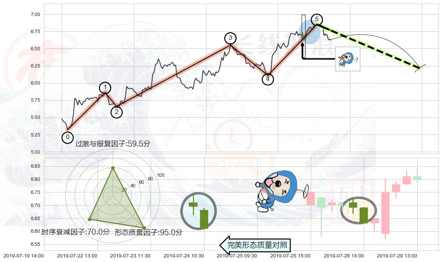 ➢ 🕰 价格走势在2019-07-26 13:00:00至2019-07-26 14:00:00期间形成下跌螺旋桨,残存影响值:-5.64