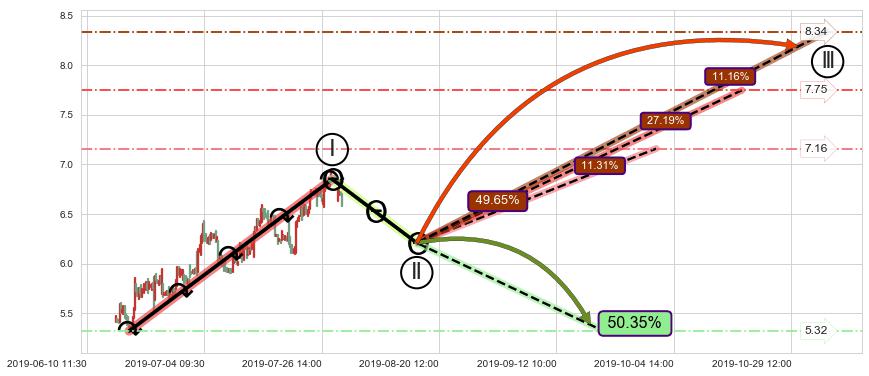 ➣ 循环浪继续向上【平均值】位置(10-18:12, 7.75),匹配聚类样本比例54.75%, 可能性概率27.19%