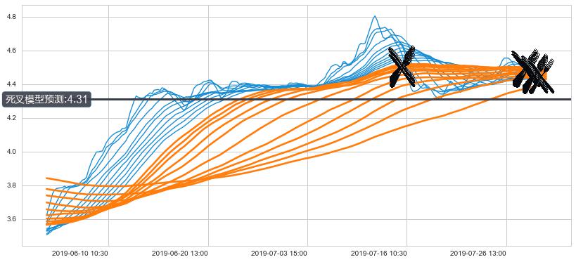 ➣ 75小时均线于(07-15 14:00: 4.51)形成【死叉】基于【死叉历史模型】预测死叉后最低波谷价格: 4.32, 死叉后最低价格4.29,已经下跌超出预测最低波谷价格, 预期反弹