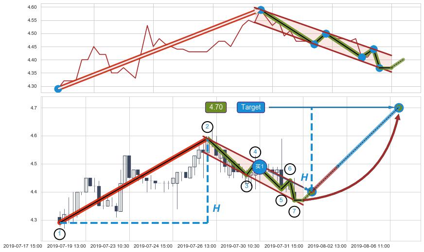 ➣ AI预测: 假定反转启动后, 第❶目标位置(08-07:12, 4.42)