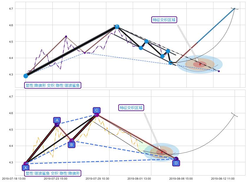 ➢ 降旗形与谐波鲨鱼信号事件周期长度级别相同,同周期信号事件