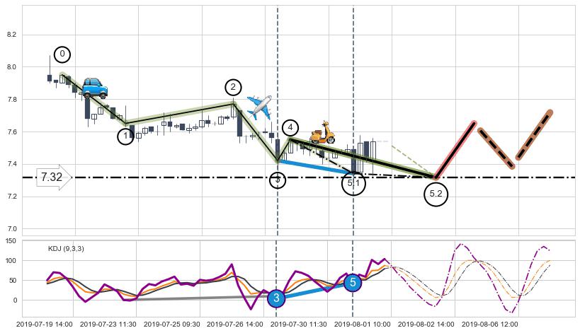➢ 5.1: 预测当前第5浪位置(07-31:09, 7.34),仍然有下跌空间
