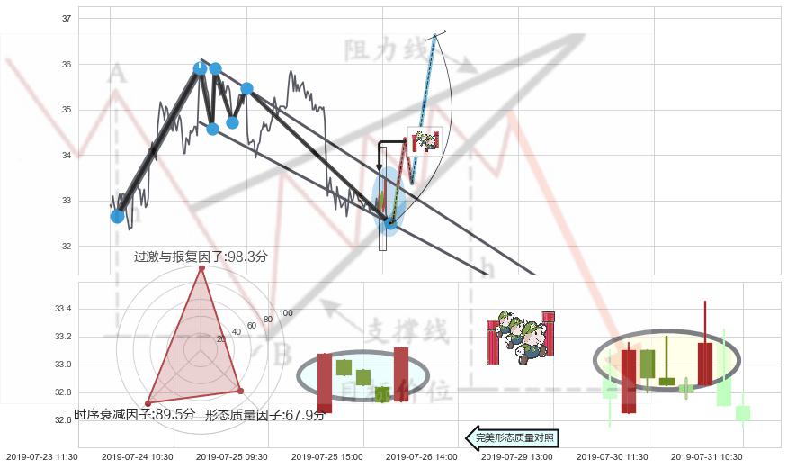 ➢ 🕰 价格走势在2019-07-30 09:30:00至2019-07-30 10:30:00期间形成曙光初现形态,残存影响值:8.09
