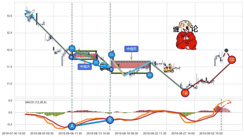➣ 【已完成】缠论 起点:07-31:10,完成第1中枢A,完成第2中枢B,终点:08-26:13,缠论共111交易小时