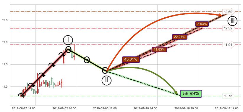 ➢ 循环浪继续向上【最低】位置(09-12:11, 11.94),匹配聚类样本比例27.52%, 可能性概率11.83%
