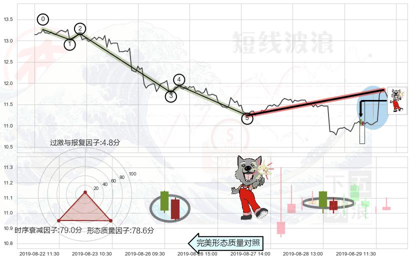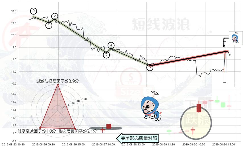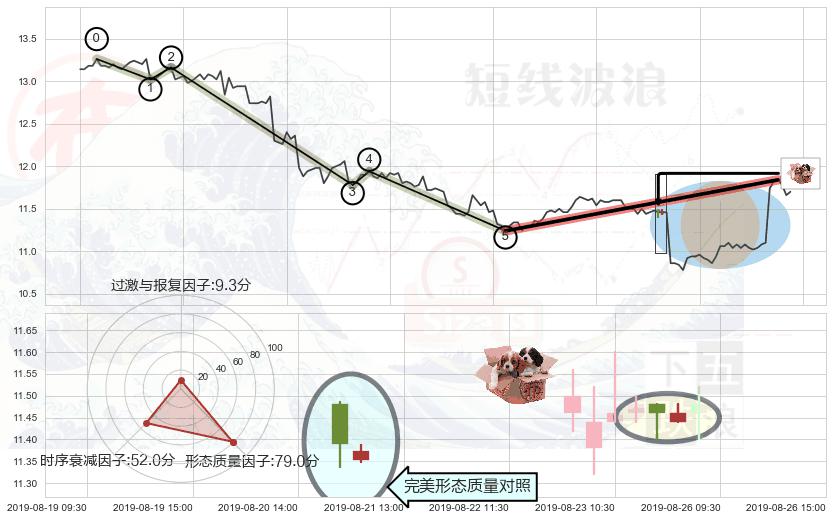 从2019-08-26 13:00至2019-08-30 15:00,共包含27个小时,阶段股价上涨8.38%,阶段股价变动位移路程比: 1 : 1.9