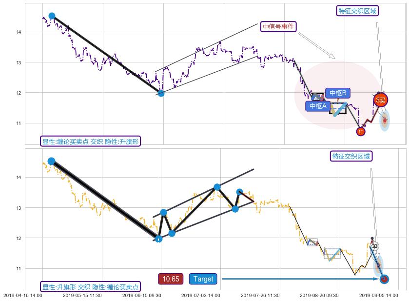 ➣ 缠论买卖点:下降缠:临近3买-猜想击穿突破3买后延续上涨趋势(大周期趋势均值回复后小周期持续趋势跟踪)