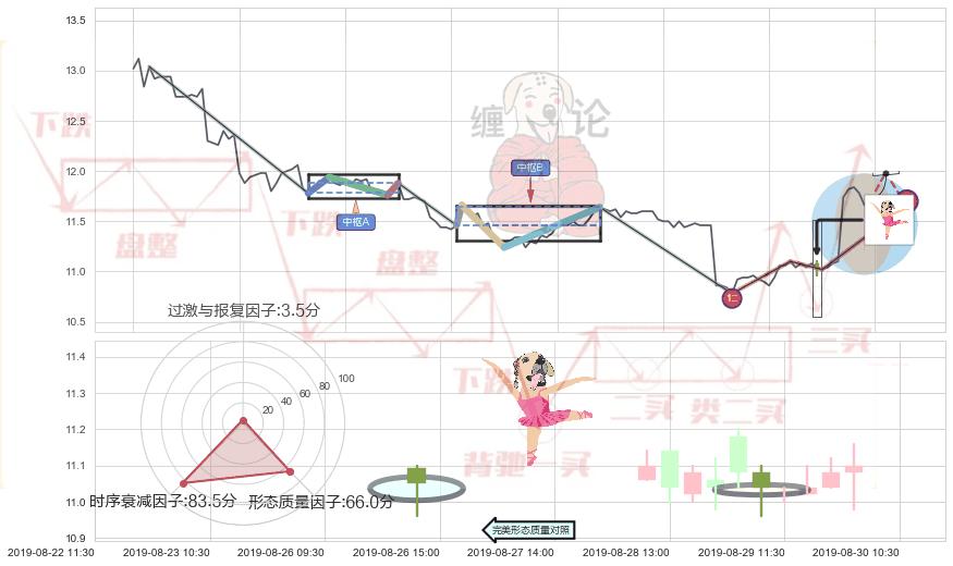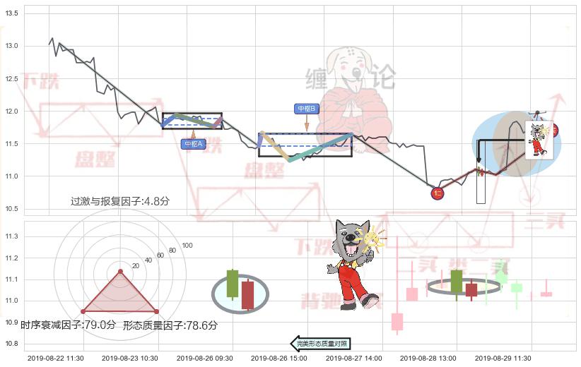 从2019-08-05 10:30至2019-08-07 10:30,共包含13个小时,阶段股价下跌-0.81%,阶段股价变动位移路程比: 1 : 8