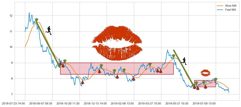 05-30 14:00至07-09 14:00 慢线与快线多次接触,存在上下穿越,有缠绕