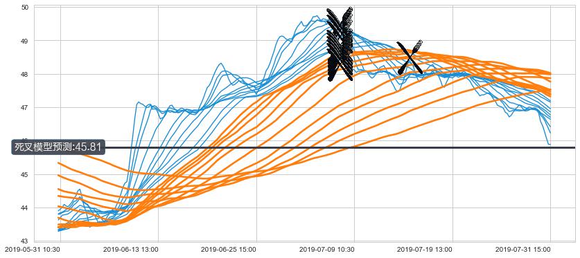 ➣ 60小时均线于(07-05 15:00: 48.74)形成【死叉】基于【死叉历史模型】预测死叉后最低波谷价格: 45.90, 死叉后最低价格45.75,已经下跌超出预测最低波谷价格, 预期反弹