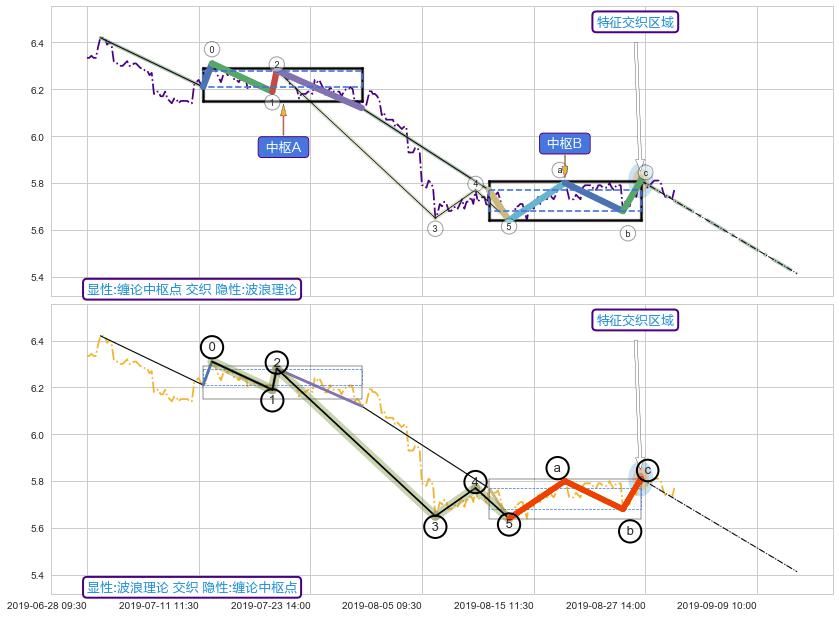 ➣ 缠论中枢点:猜想破位中枢B后持续下拉 → 下跌 → 破位中枢B支撑 → 持续趋势跟踪