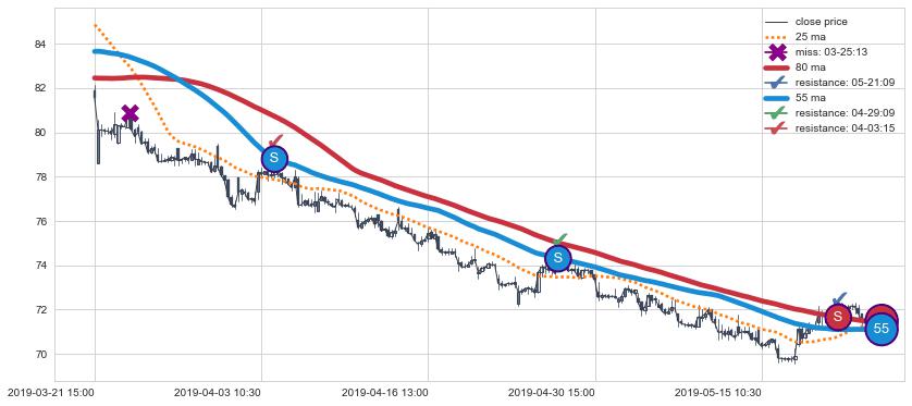 📝 多条均线形成死叉后走势最低价格达到: 66.55