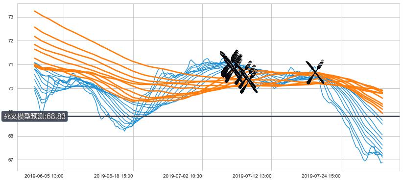➣ 80小时均线于(07-09 09:30: 70.64)形成【死叉】基于【死叉历史模型】预测死叉后最低波谷价格: 68.82, 死叉后最低价格66.55,已经下跌超出预测最低波谷价格, 预期反弹