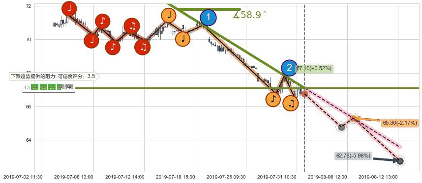 ➣ 预测:2019-08-06 15:00,【试探阻力】稳定目前下跌趋势的前提下,预测价格:65.30