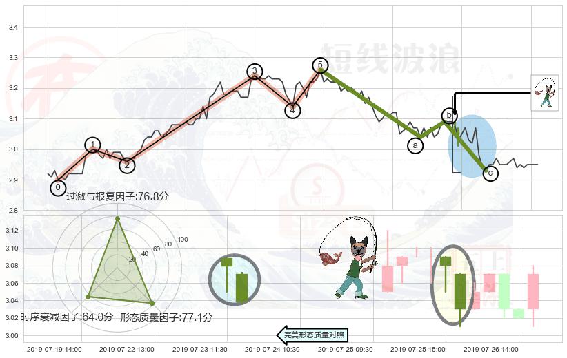 从2019-07-17 11:30至2019-07-31 15:00,共包含64个小时,阶段股价下跌-9.78%,阶段股价变动位移路程比: 1 : 3