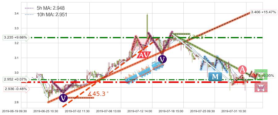 ➢ 预测:2019-08-01 12:00,【小幅反弹】稳定目前下跌趋势的前提下,预测价格:2.965