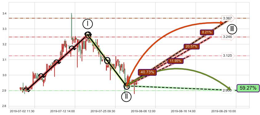 ➢ 循环浪继续向上【最低】位置(08-15:13, 3.125),匹配聚类样本比例29.33%, 可能性概率11.95%