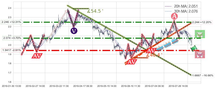 ♘ 阻力价格位2.246,可信任强度80.17%,距离最后交易2019-07-31 15:00形成的收盘价格2.000相差 +12.31%