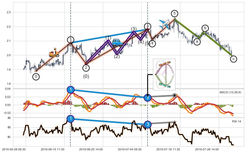 ➣ 波浪理论:猜想达到c点后小回调终止反转上涨 → 上涨 → 【拐点】临近 → 阶段均值回复结束后继续大周期趋势跟踪