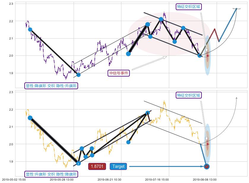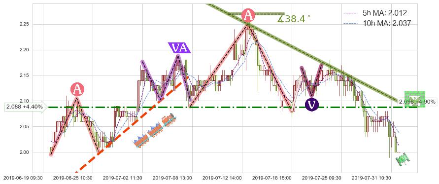 2019-07-08: 时域附近第一阻力位2.088持续的对下跌趋势进行阻拦,有效地放缓了下跌的速度。