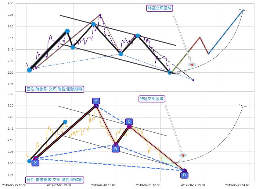 ➣ 未完成【蝴蝶】形态起点X: 06-26:15, 已到达C点: 07-23:11, 预测最终D点: 08-06:14, 共166交易小时