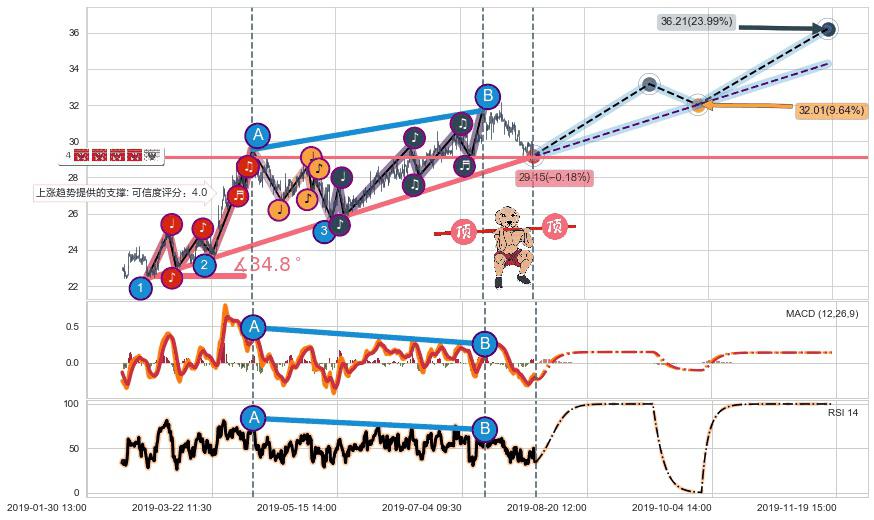 ♘ 阻力价格位31.70,可信任强度73.52%,距离最后交易2019-07-31 15:00形成的收盘价格29.20相差 +8.56%