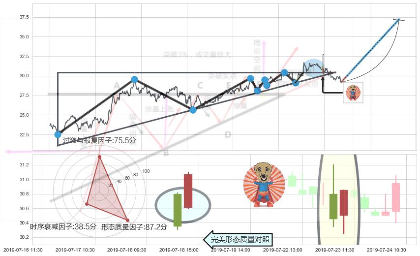 ➢ 🕰 价格走势在2019-07-23 09:30:00至2019-07-23 10:30:00期间形成旭日东升,残存影响值:5.89