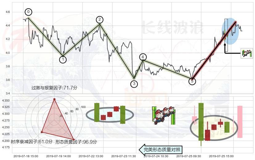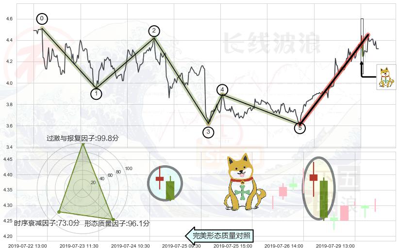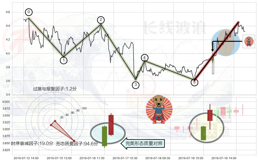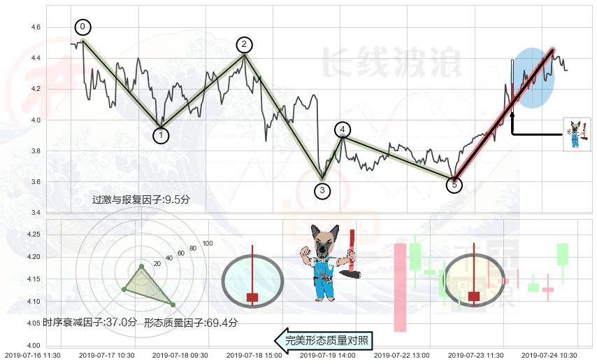 ➢ 🕰 价格走势在2019-07-23 10:30:00至2019-07-23 10:30:00期间形成仙人指路,残存影响值:2.33