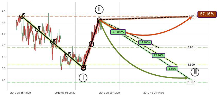 ➢ 循环浪继续向下【最高】位置(09-30:15, 3.961),匹配聚类样本比例27.60%, 可能性概率11.82%