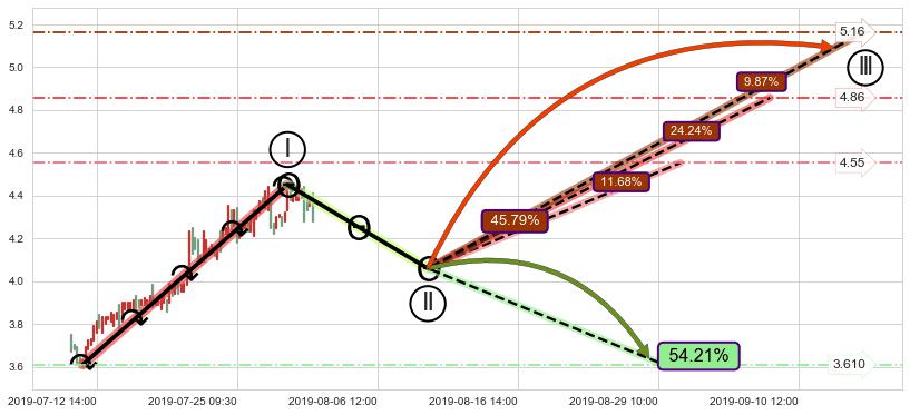 ➢ 循环浪继续向上【最低】位置(08-30:12, 4.55),匹配聚类样本比例25.51%, 可能性概率11.68%