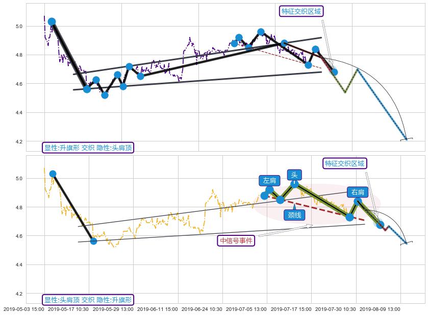 ➢ 头肩顶属【中级别信号事件】升旗形属【长级别信号事件】中长周期组合信号事件,中长事件长度比36.08%